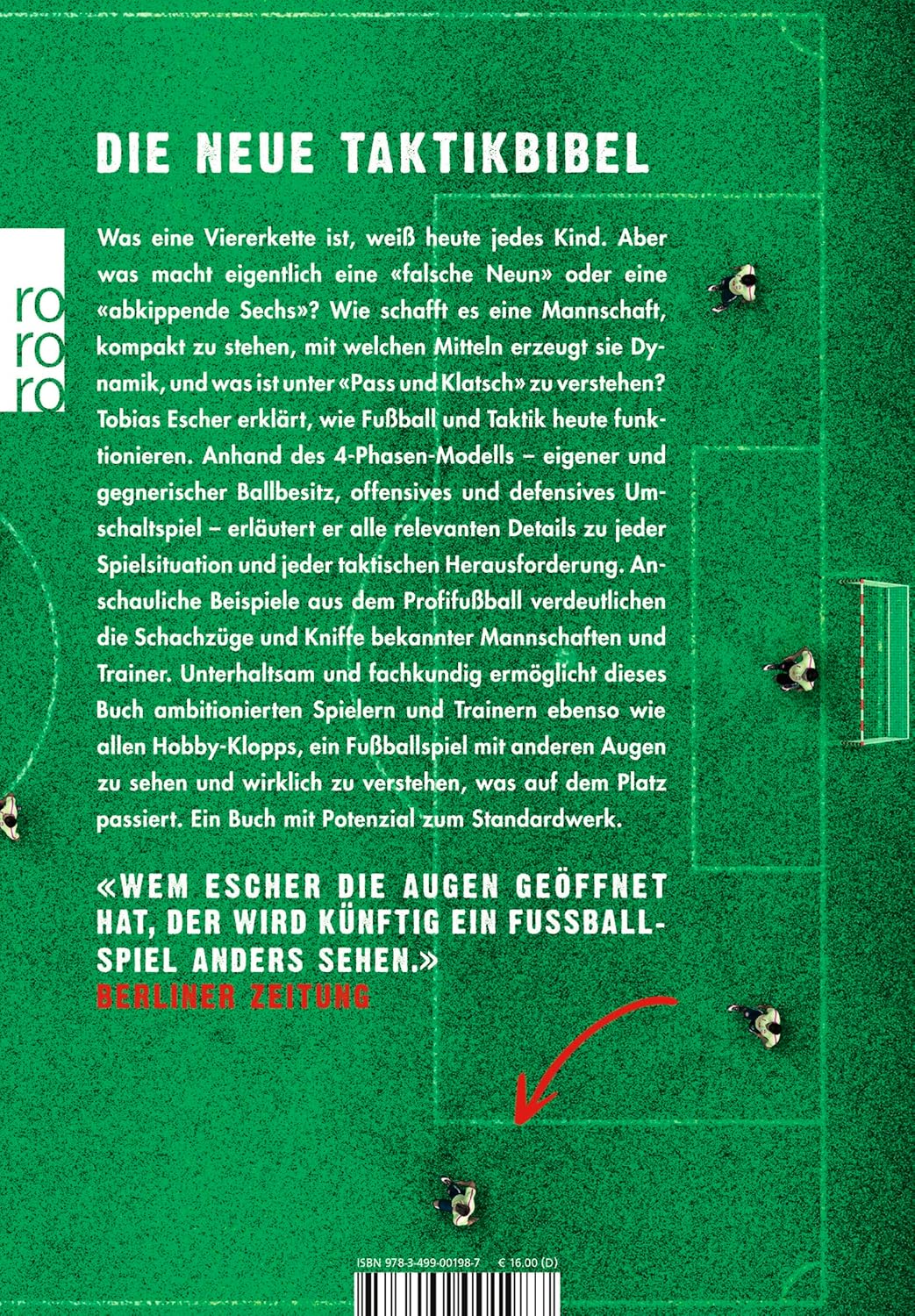 Tobias Escher erklärt, wie moderne Fußballtaktik funktioniert: von falscher Neun über abkippende Sechs bis hin zu kompaktem Spiel und Dynamik. Anhand des 4-Phasen-Modells (eigener und gegnerischer Ballbesitz, offensives und defensives Umschaltspiel) werden alle Spielsituationen praxisnah erläutert. Mit anschaulichen Beispielen aus dem Profifußball bietet das Buch Spielern, Trainern und Fußballfans die Möglichkeit, ein Spiel wirklich zu verstehen und taktische Zusammenhänge zu erkennen – ein potenzielles Standardwerk.